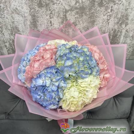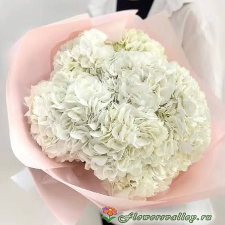 Восхитительный моно букет из нежных гортензий будет идеальным подарком самому дорогому и любимому человеку. Воздушный и стильный - он надолго останется в сердце получателя.
