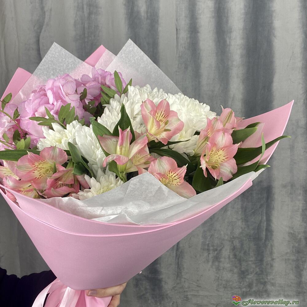 Букет в бело-розовой гамме с гортензией